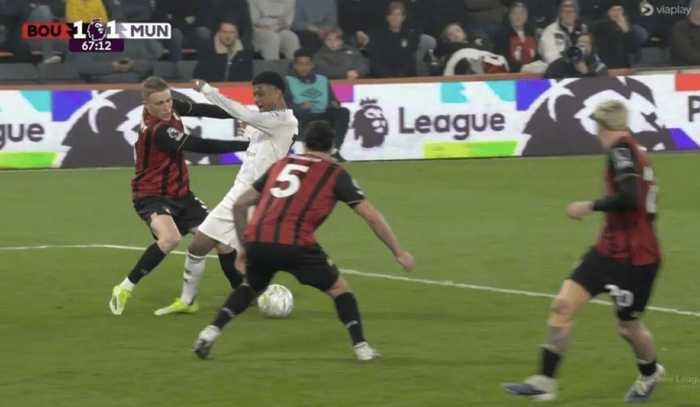 #伯恩茅斯2比2曼联# 67分钟,阿玛德禁区内倒地,裁判没有表示。VAR介入后维持判罚。